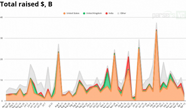 Total raised $, bln - April 13, 2026 by Parsers VC