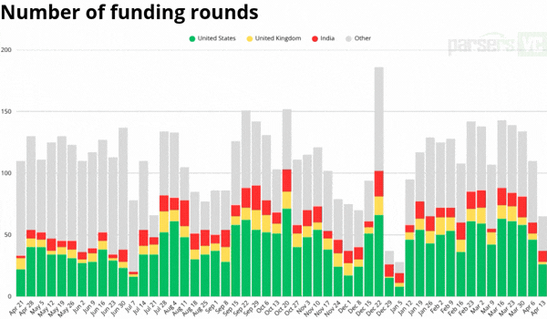 Number of funding rounds - April 13, 2026 by Parsers VC