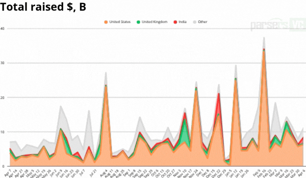 Total raised $, bln - April 6, 2026 by Parsers VC