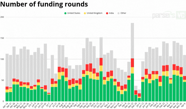 Number of funding rounds - April 6, 2026 by Parsers VC
