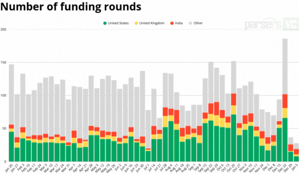 Number of funding rounds - January 5, 2026 by Parsers VC