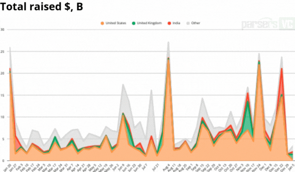 Total raised $, bln - January 5, 2026 by Parsers VC