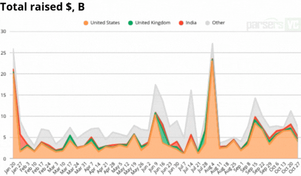 Total raised $, bln - October 27, 2025 by Parsers VC